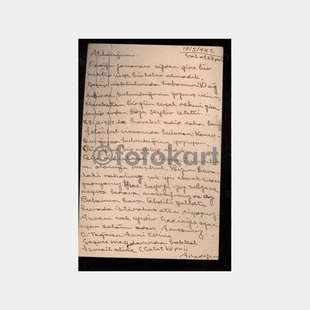 Postadan geçmiş kart, 1942 Adapazarı 10. 5. 1942 Çatalköprü