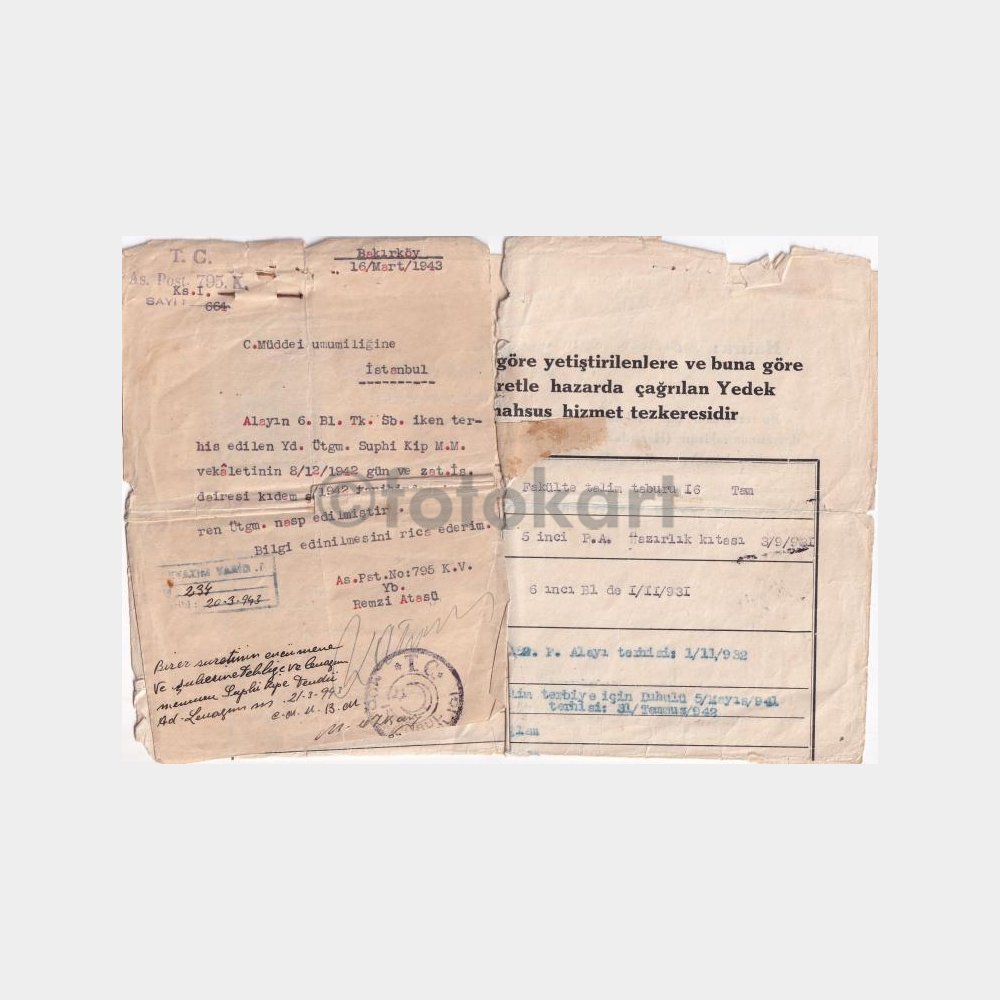 1942 Bakırköy Askeri Posta Yazısı