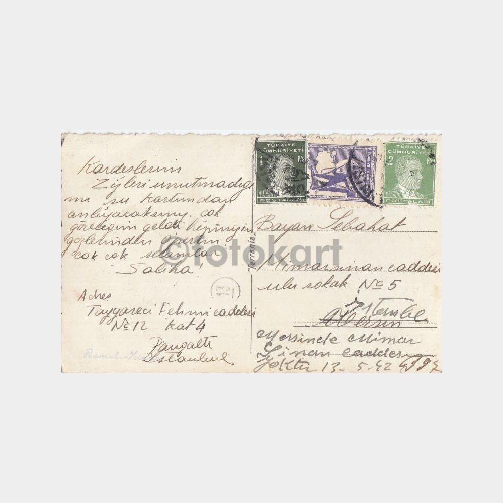 Çok temiz durumda, arkası yazılı kartpostal, Mersinden geri dönmüş.