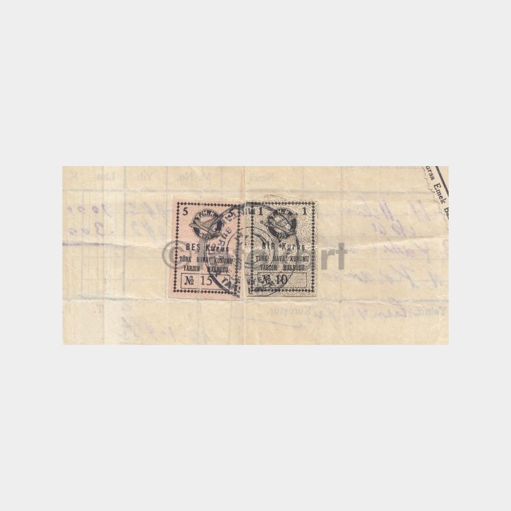 1942 Bursa Belediyesi Vergi Makbuzu (Hava Kur Yardım Pullu)