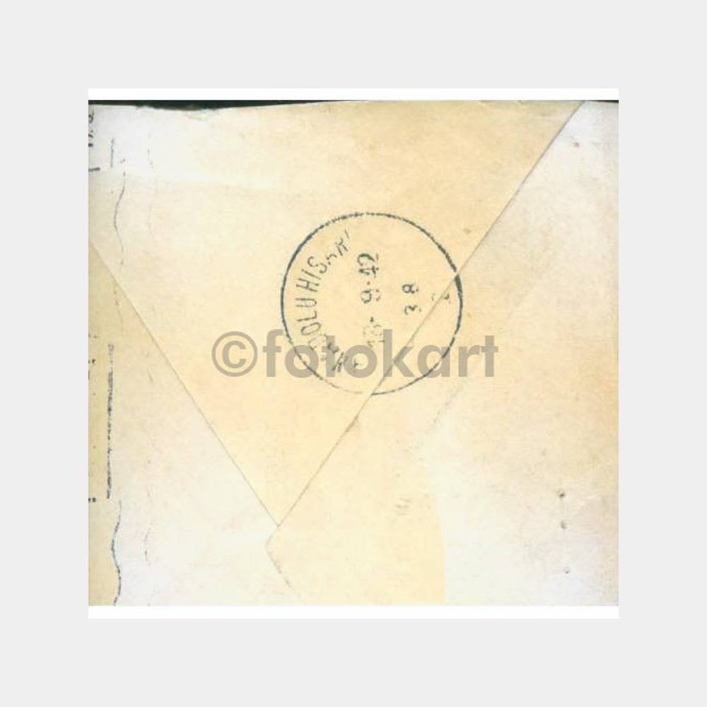 Üzerinde 16. 6. 1942 Gemlik ve Anadoluhisarı varış damgalı zarf ve içinde mektubu var