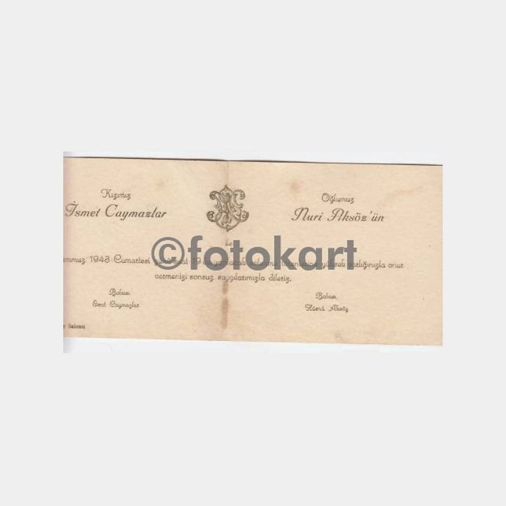 “1943 Beyazıt Kızılay Salonu Nikah Davetiyesi” için yorum yapan ilk kişi siz olun