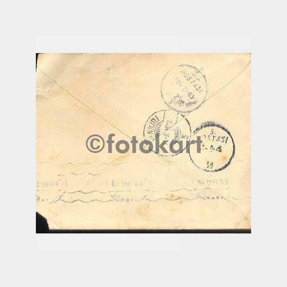 . 1943 Çankırı Sahra postası damgalı zarf, ön yüzü askeri posta 12355 Çankırı adresli, 06. 09. 18-943 galata damgalı İnönü pullu, arka yüzü   11. 9. 1943 Çankırı Damgalı 2 adet farklı Sahra postası damgası, filatelik tarihimiz açısından önemli. Çok temiz