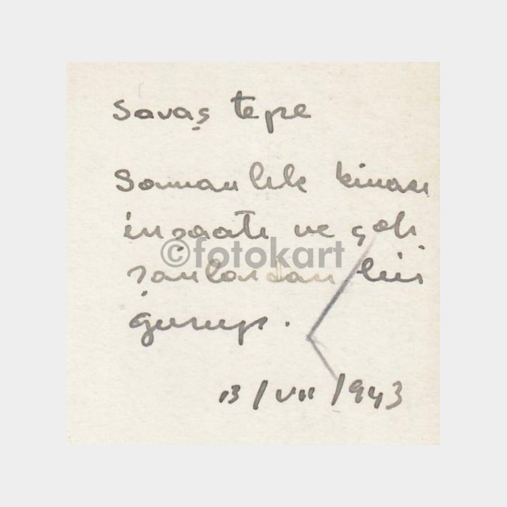 6 x 9 cm ebadında, arkası yazılı albümden çıkma belgesel fotoğraf, idare binası önü. 12-6-1943 .