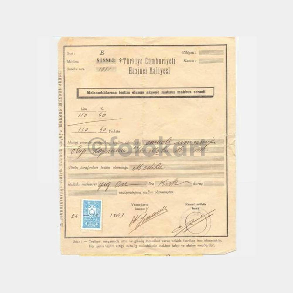 24. 4. 1943 tarihli makbuz
