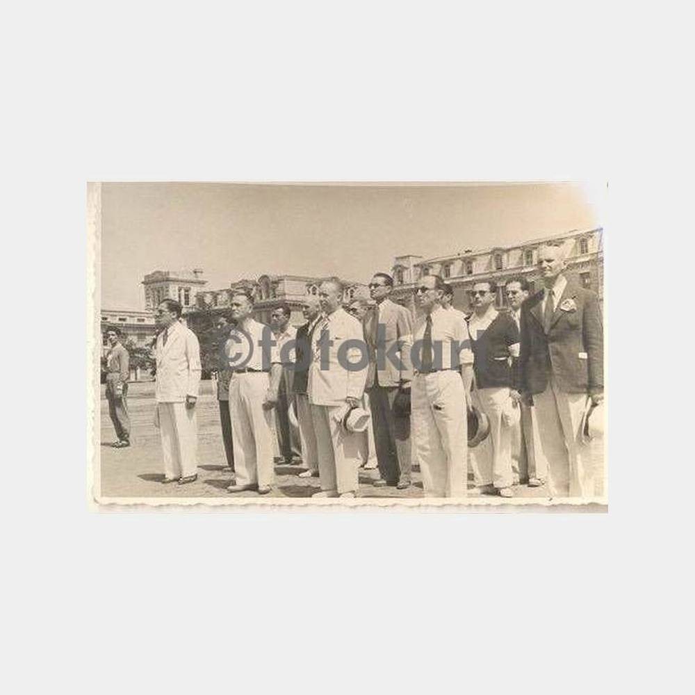 1944 İstanbul Atletizm yarışma heyeti foto yarışma öncesi İstiklal Marşını dinlerken, önde hakem heyeti