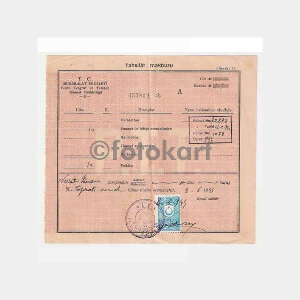 Münakalat vekaleti Kızıltoprak merkezi radyo yıllık abone ücreti makbuzu, arkası thk yardım pullu 25 kr