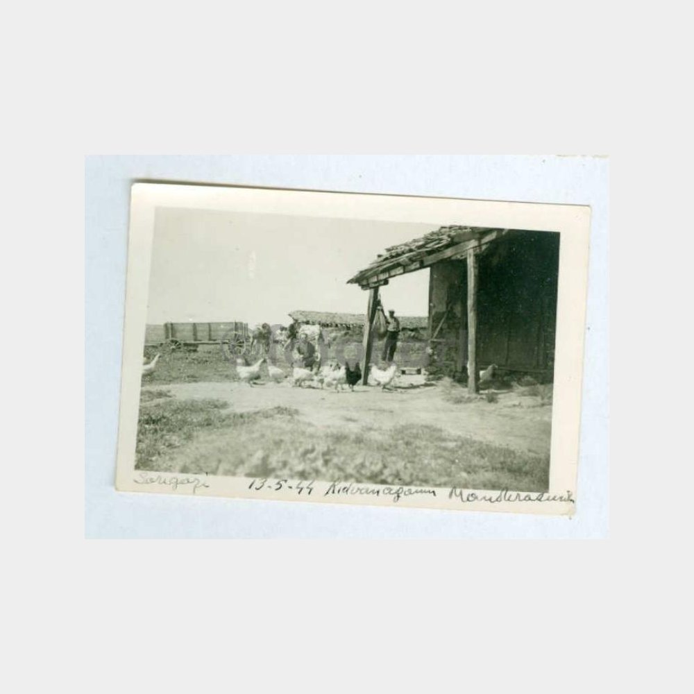6 x 9 cm. ebadında, albümden çıkma ön yüzünde “13.5.1944 Sarıgazi, Rıdvan Ağanın mandırası” yazılı fotoğraf.