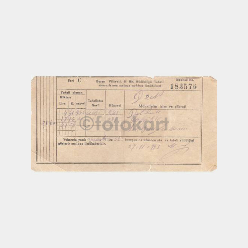 “1945 Bursa Hususi Muh Md Vergi Makbuzu” için yorum yapan ilk kişi siz olun