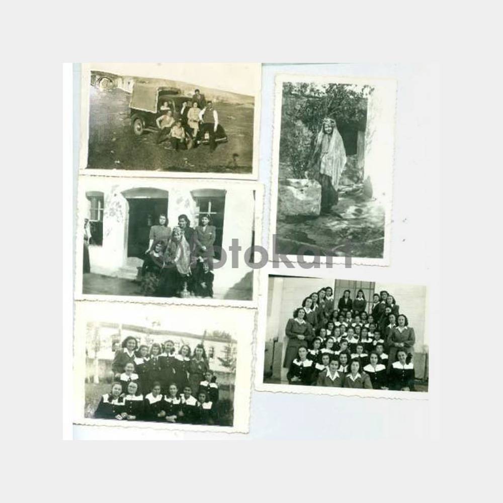 6 x 9 cm ebadında arkası denizli 1945 yazılı albümden çıkma 5 adet fotoğraf