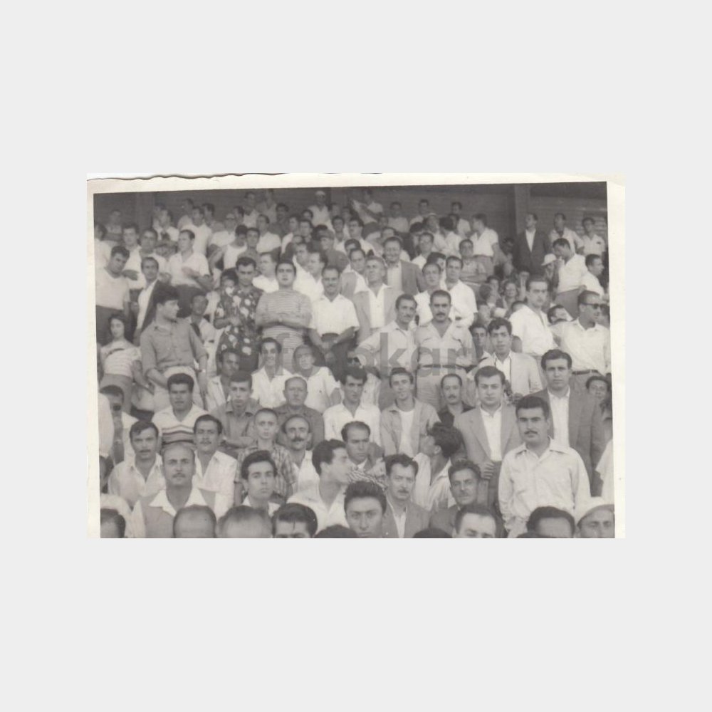 7 x 11 cm ebadında, arkası yazısız belgesel fotoğraf. Maç izleyenler olabilir.