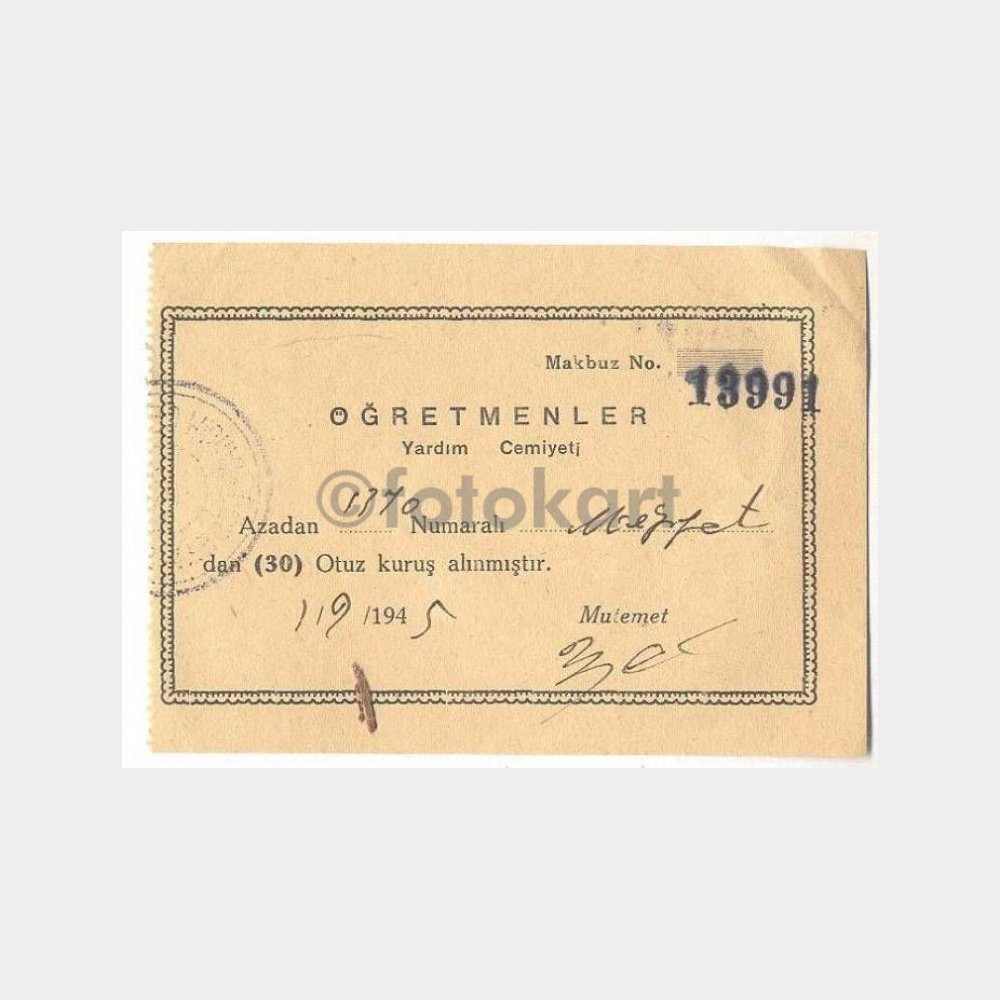 “1945 Öğretmenler Yardım Cemiyeti Makbuzu” için yorum yapan ilk kişi siz olun