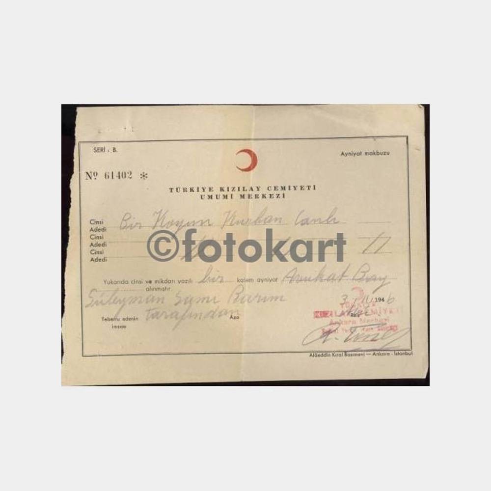 1946 Ankara Kızılay Kurban Bağış Makbuzu