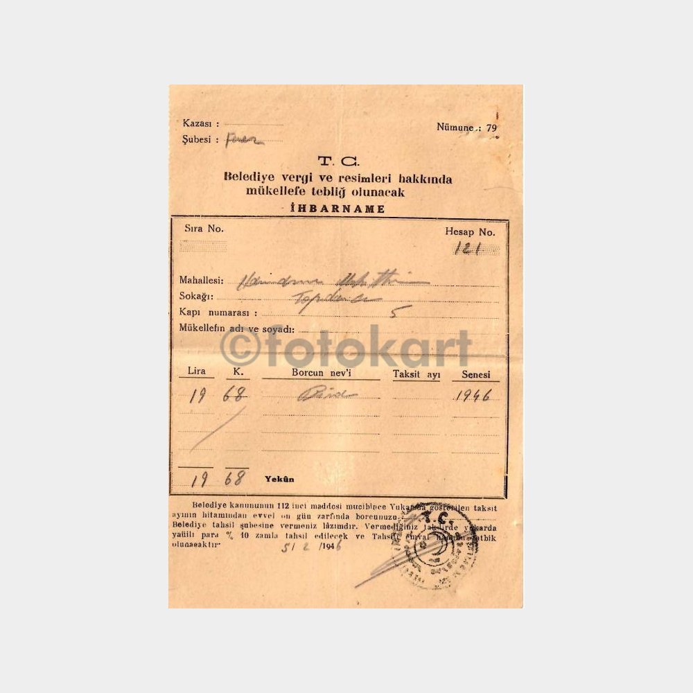 “1946 Belediye İhbarname” için yorum yapan ilk kişi siz olun
