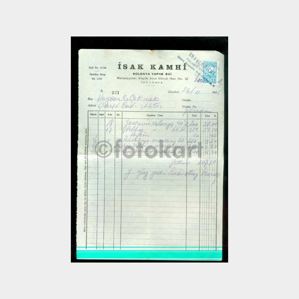 1946 İsak Kahmi – Kolonya Yapım Evi Faturası