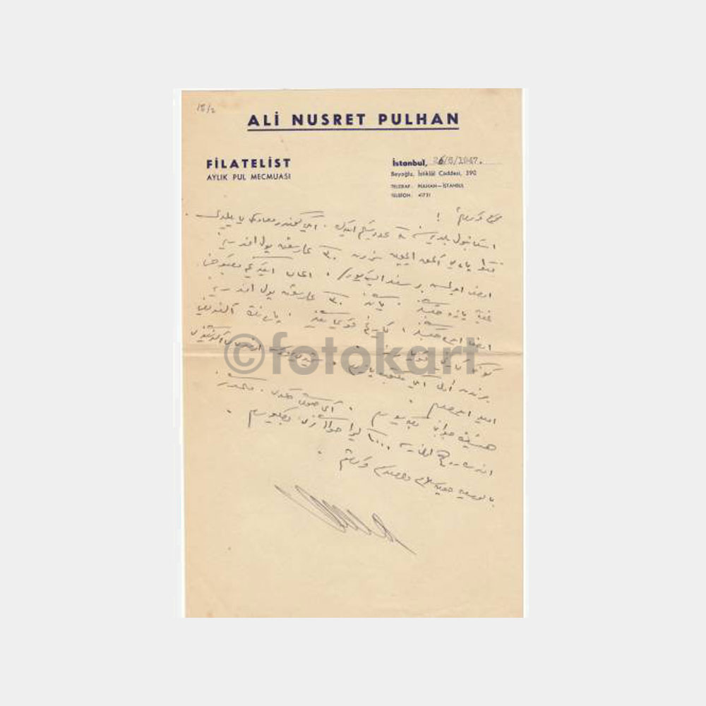 1947 Ali Nusret Pulhan 5 Adet Filatelik Yazı