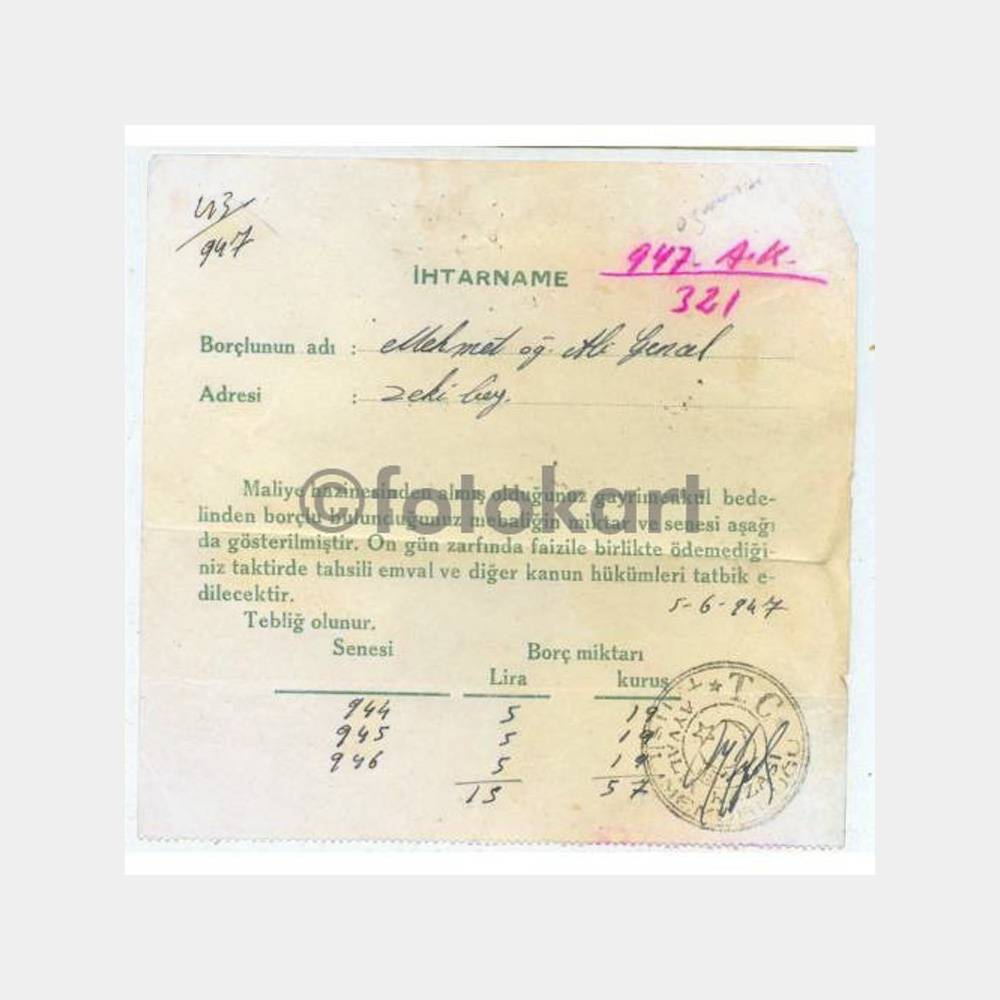 “1947 Ayvalık Maliye İhtarname ve Damgalı Zarfı” için yorum yapan ilk kişi siz olun