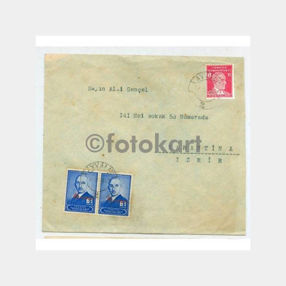 Çok temiz maliye ihtarname zarfı ve üzerinde Ata ve İnönü pulları üzerinde Ayvalık posta damgası