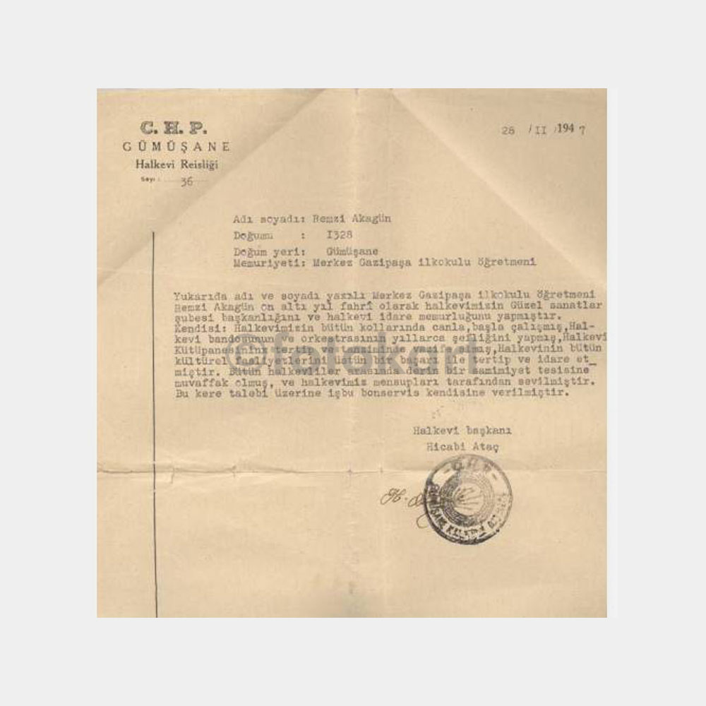 “1947 Gümüşhane Halkevi Reisliği Yazısı” için yorum yapan ilk kişi siz olun