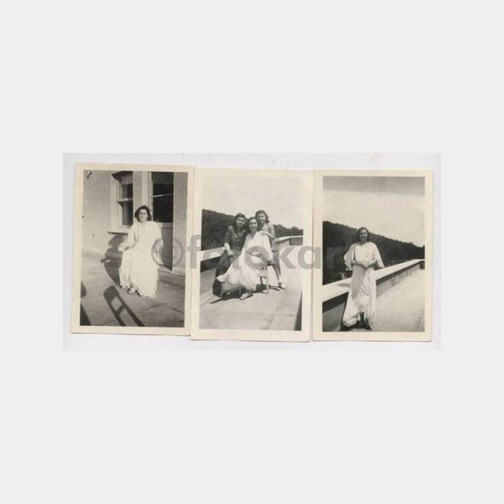 6 x 9 cm ebadında, arkası yazılı. 8.5.1948 sanatoryum balkonundan çekilmiş kadınlar görünüş. 3 adet fotoğraf.