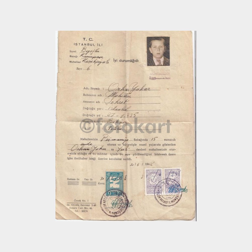 1948 Kasımpaşa Muhtarlık İyi Durum Belgesi