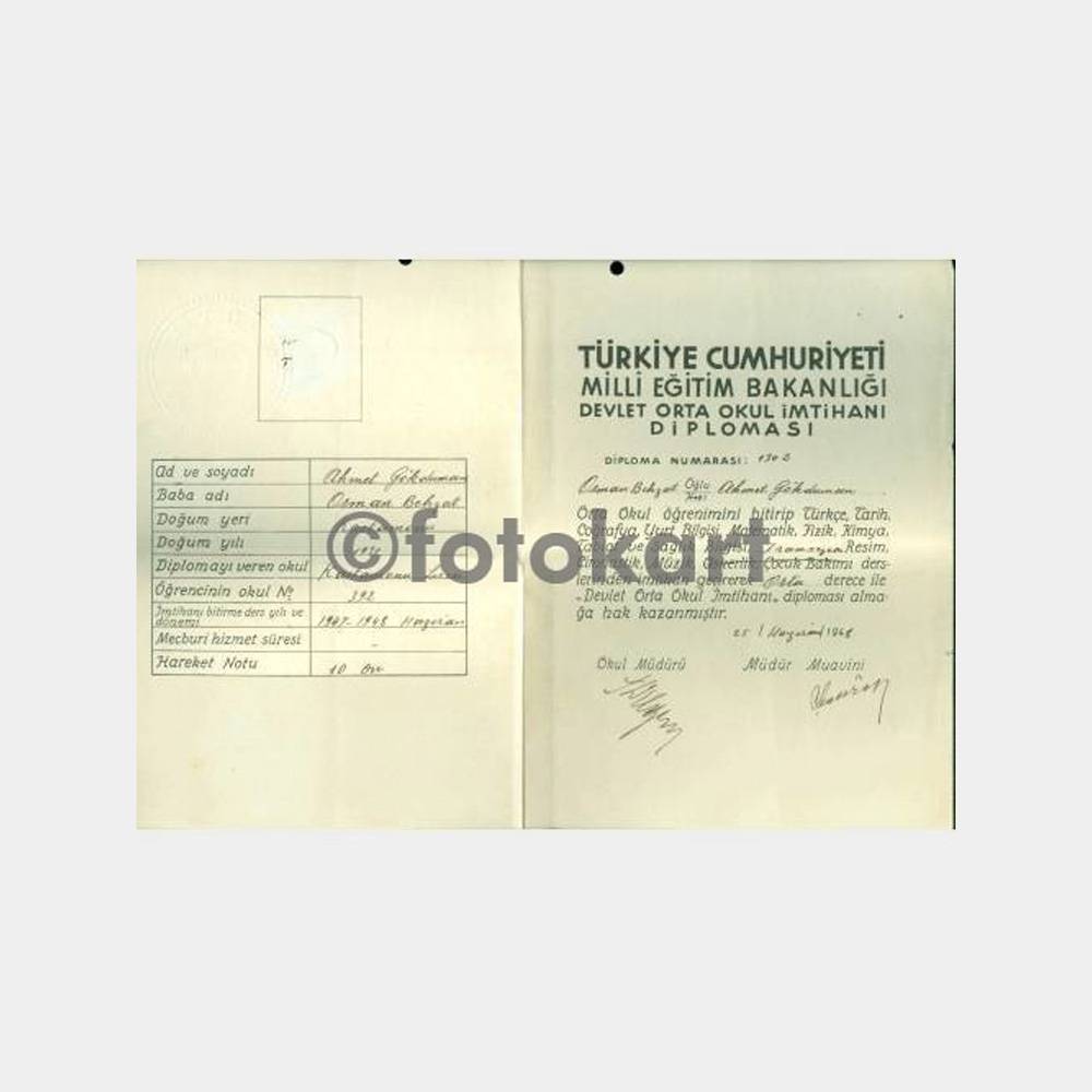 Çok temiz 1948 yılı Kastamonu Lisesi diploması