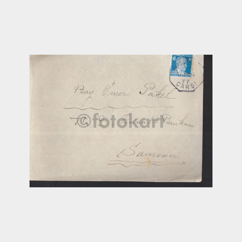 1949 Balıkesir Çarşı Altıgen Damga Posta Zarf