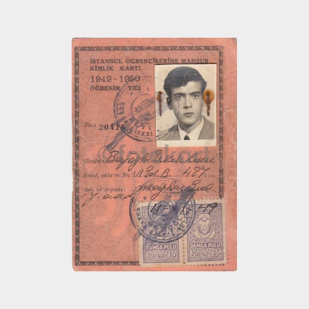 1949 Beyoğlu Erkek Lisesi Öğrenci Kimlik Kartı