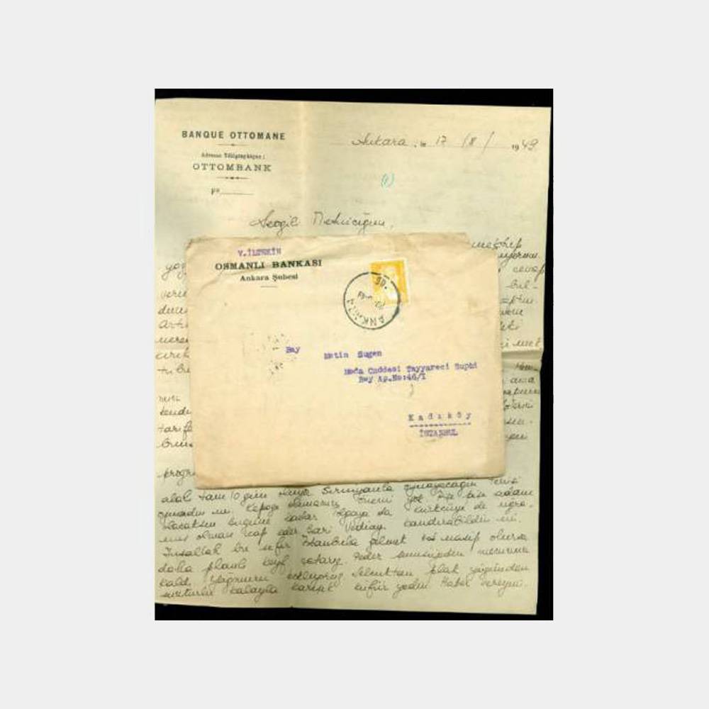 Osmanlı Bankası Ankara şb. antetli zarf içinde mektup