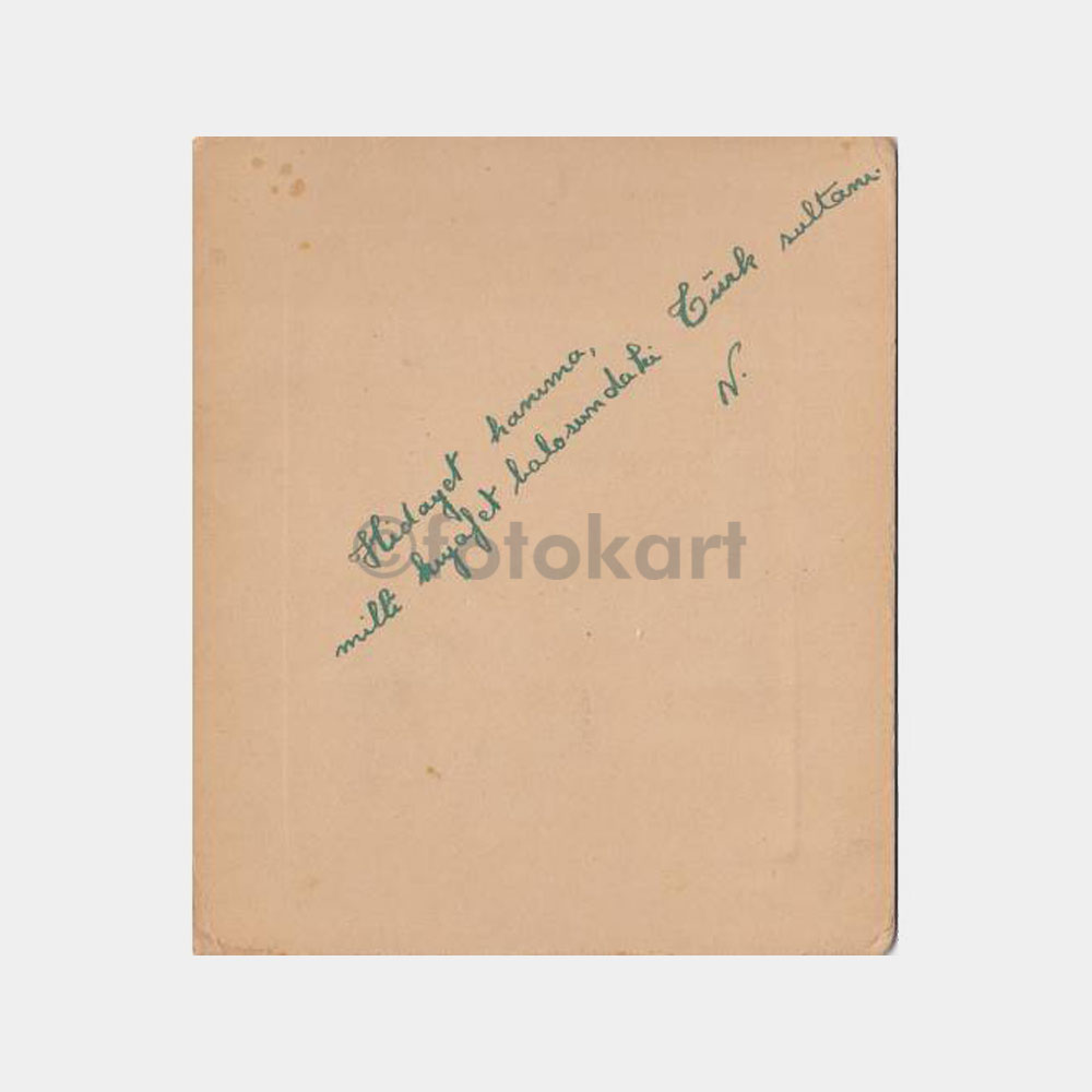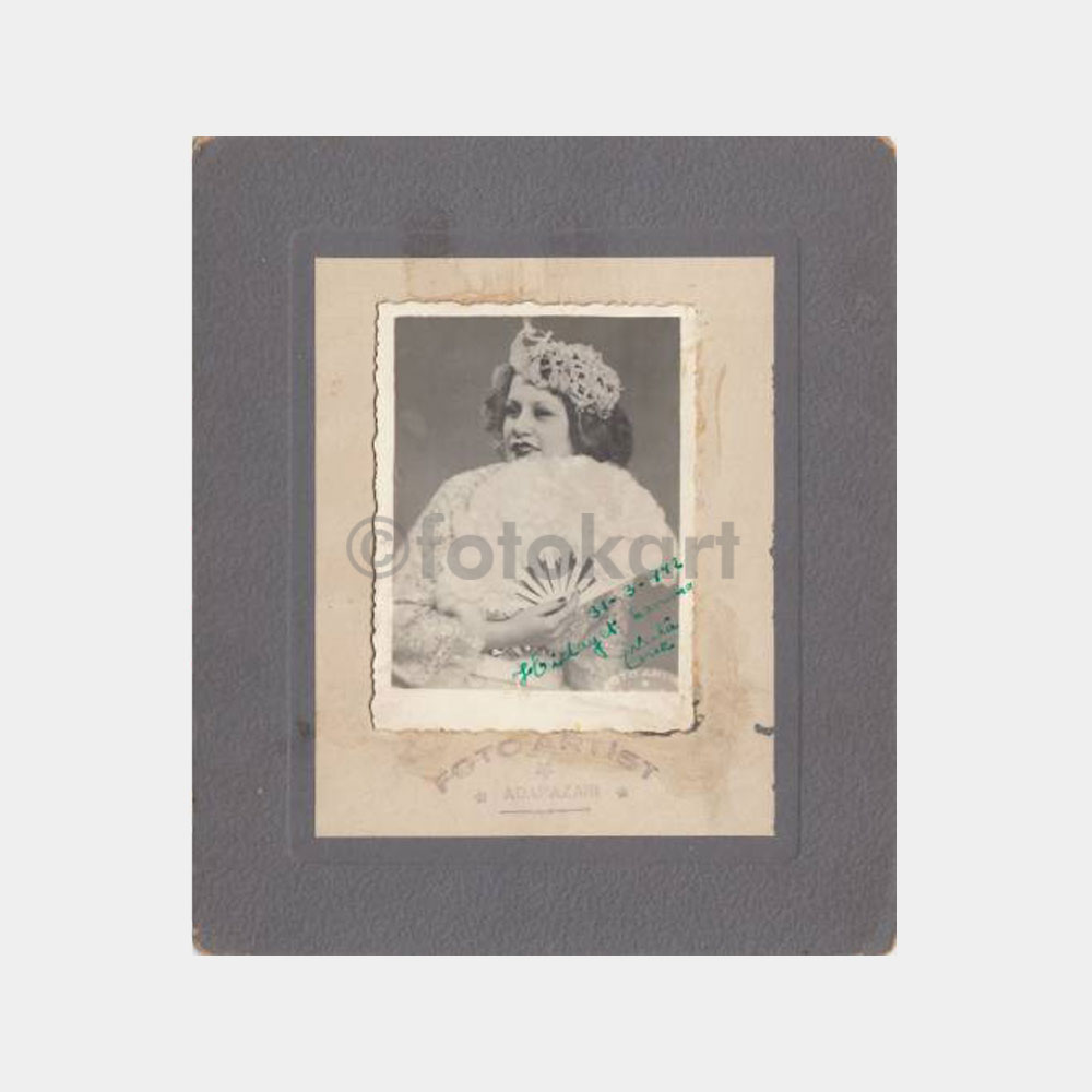 Arkası yazılı. 16 x 14 cm fotoğraf, değerli belgesel. Türk sultanı bayan balo kıyafetı ile – Adapazarı.