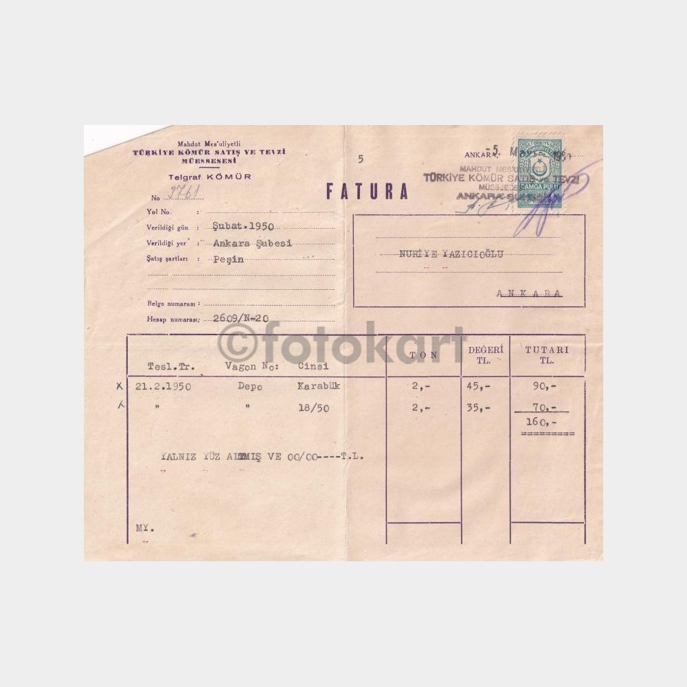 “1950 Ankara Yakacak Kömür Faturası No. 02” için yorum yapan ilk kişi siz olun