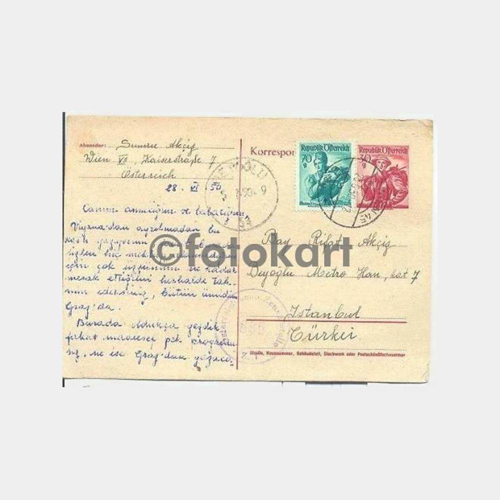 Üzerinde Beyoğlu 5. 7. 1950 damgalı ve Avusturya damgalı