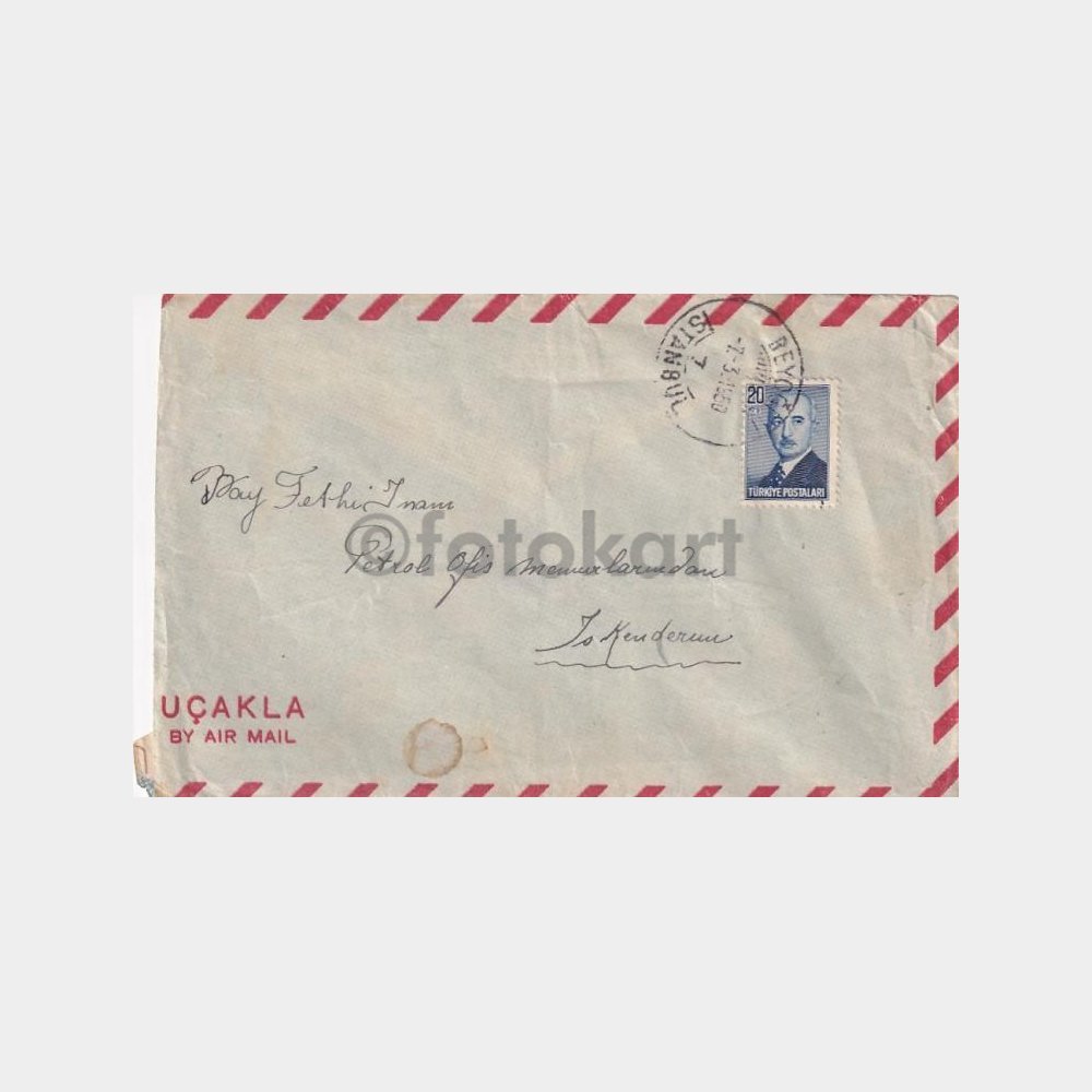1950 Beyoğlu Posta Damgalı Uçak Zarfı (İskenderun Varış Damgalı)
