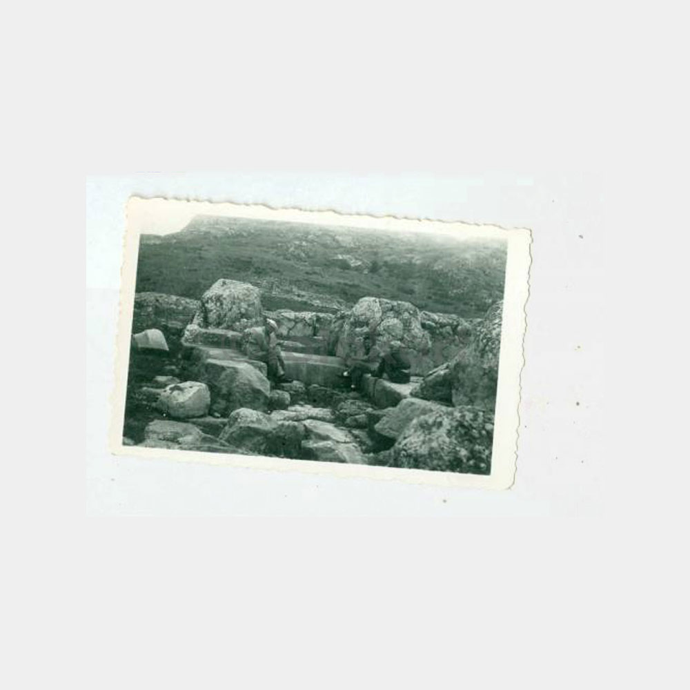 9 x 6 cm ebadında, arkası yazılı fotoğraf. 10.06.1950 Boğazköy kazılarında görünüş.