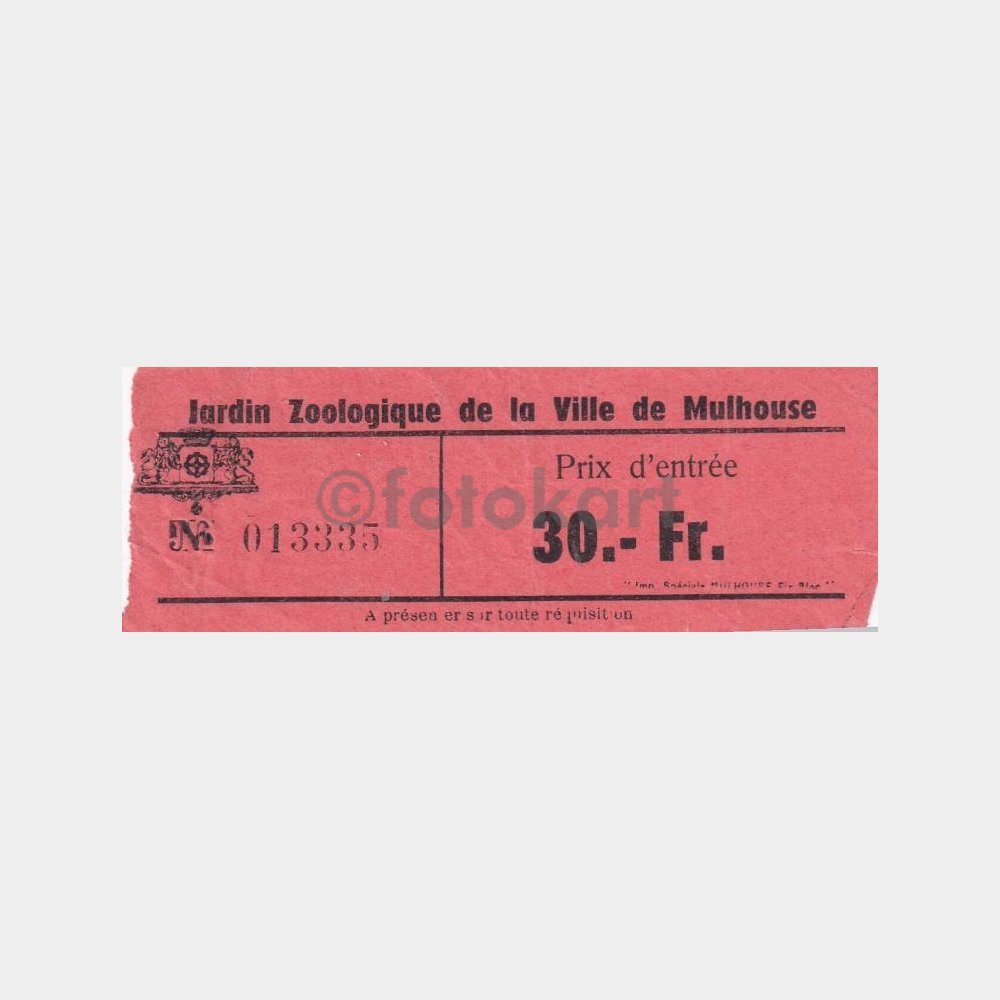 1950 Fransa Mulhouse Hayvanat Bahçesi Giriş Bileti (Koleksiyon Amaçlı)