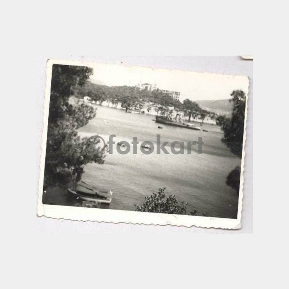 6 x 9 cm ebadında, Heybeliada sanatoryum önünde bir savaş gemisi görülmekte