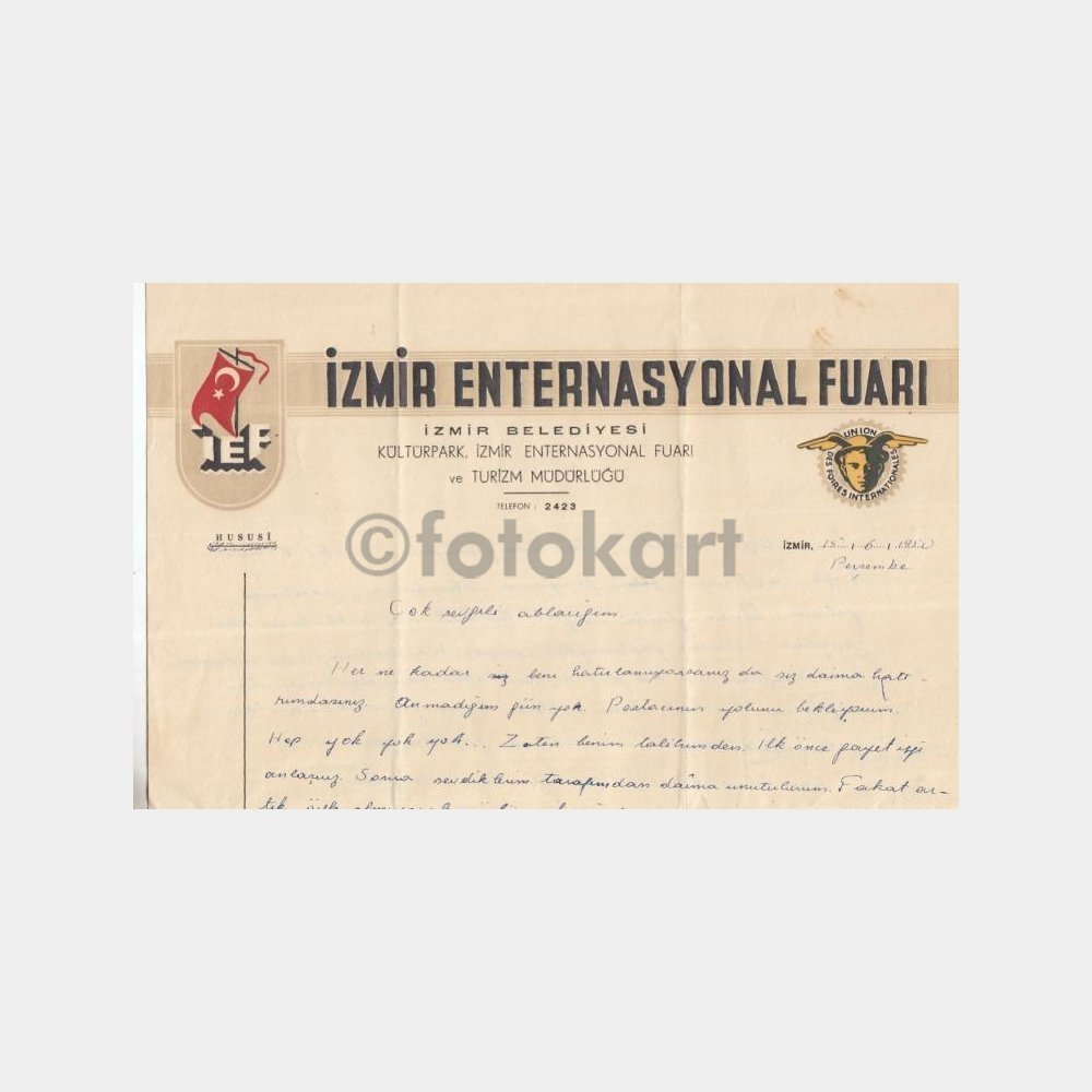 “1950 İzmir Enternasyonel Fuarı Antetli Kağıda Yazılmış Mektup” için yorum yapan ilk kişi siz olun