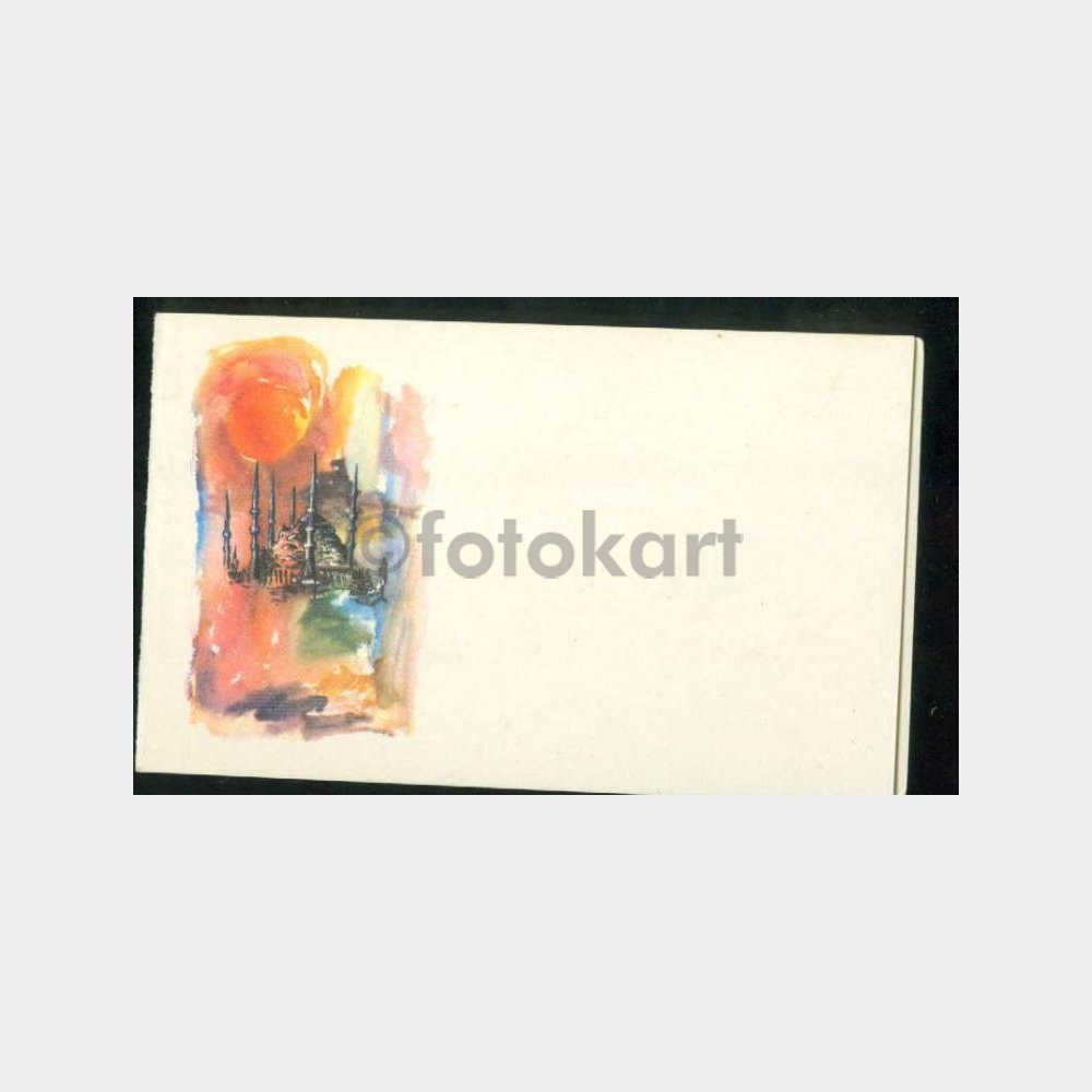 1950 Suluboya Resim Baskılı Tebrik Kartı
