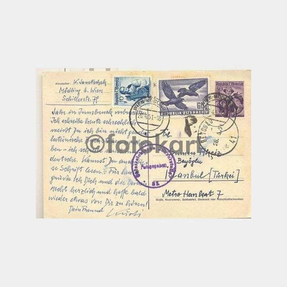 Üzerinde ayrıca Beyoğlu 28. 4. 1951 damgası ve diğer değişik bir damga var