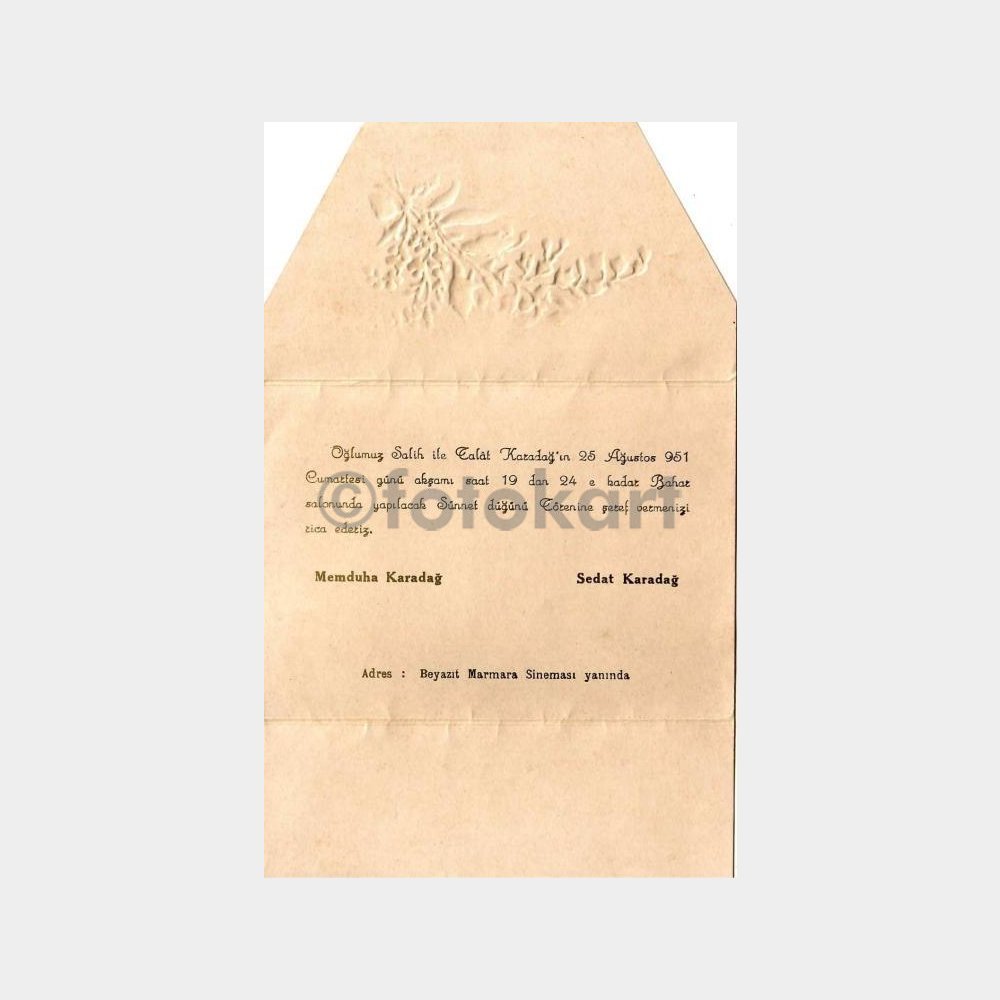 “1951 Beyazıt Bahar Salonu Düğün Davetiyesi” için yorum yapan ilk kişi siz olun Yanıtı iptal et