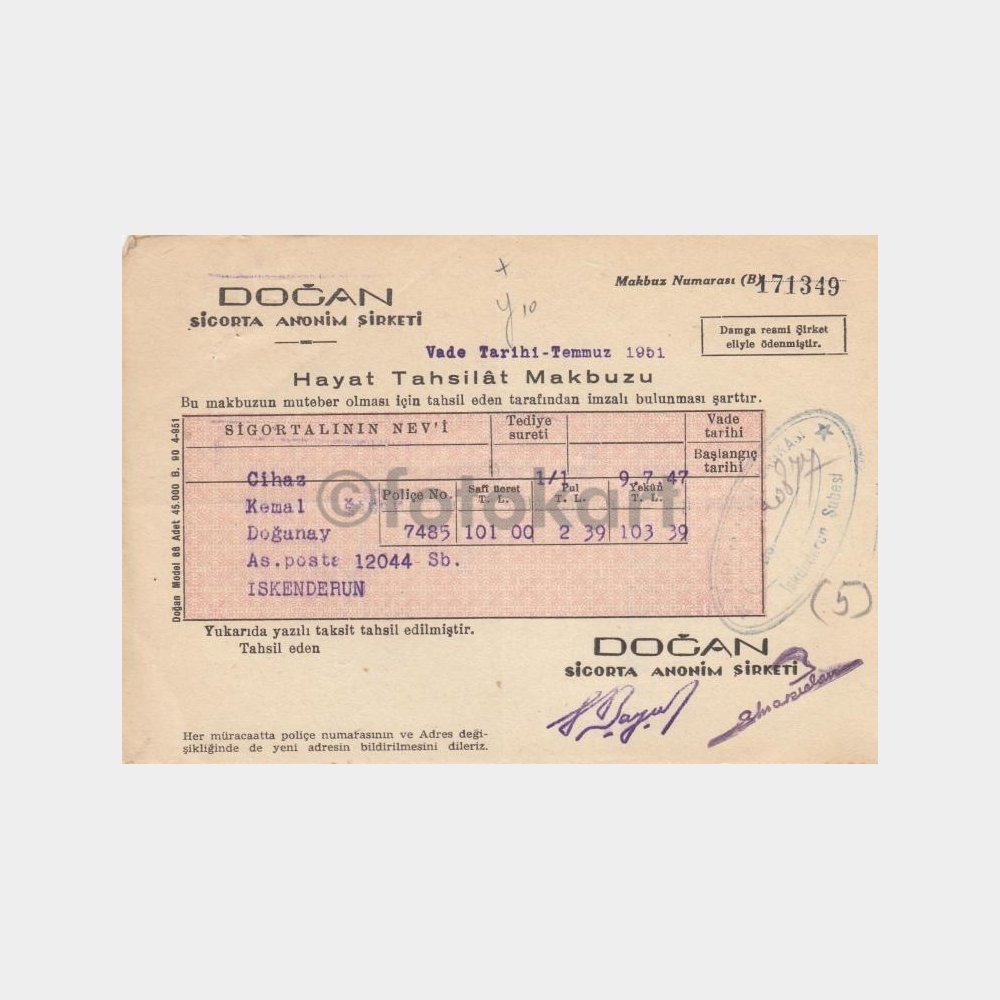 Çok temiz, Doğan Sigorta poliçe tahsilat makbuzu.