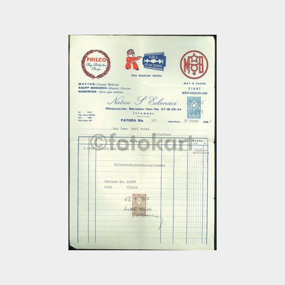 1951 Tahtakale Eskenazi Buzdolabı Faturası