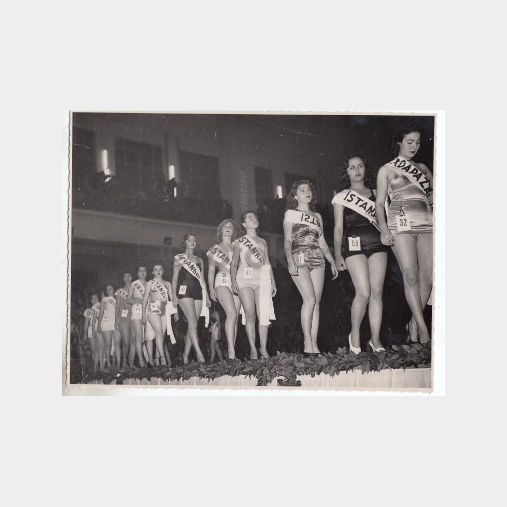 23 x 17 cm ebadında, arkası yazısız, Foto Hikmet damgalı. 17 x 23 cm 6 adet belgesel fotoğraf. 1952 de Avrupa güzellik kraliçesi seçildi.