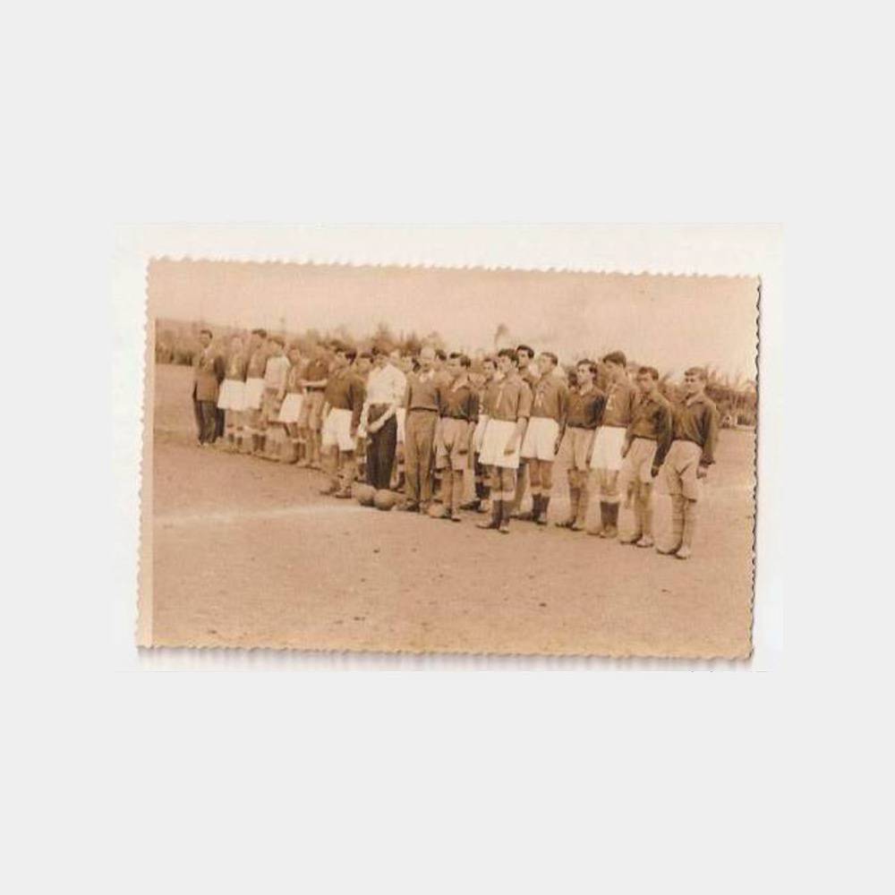 19 Mayıs 1952 tarihinde yapılan spor törenlerinde Donatımspor ve Erkek Sanat Okulu arasında yapılan futbol maçı öncesi alınmış bir fotoğraf, foto aile Adapazarı kaşesi var.
