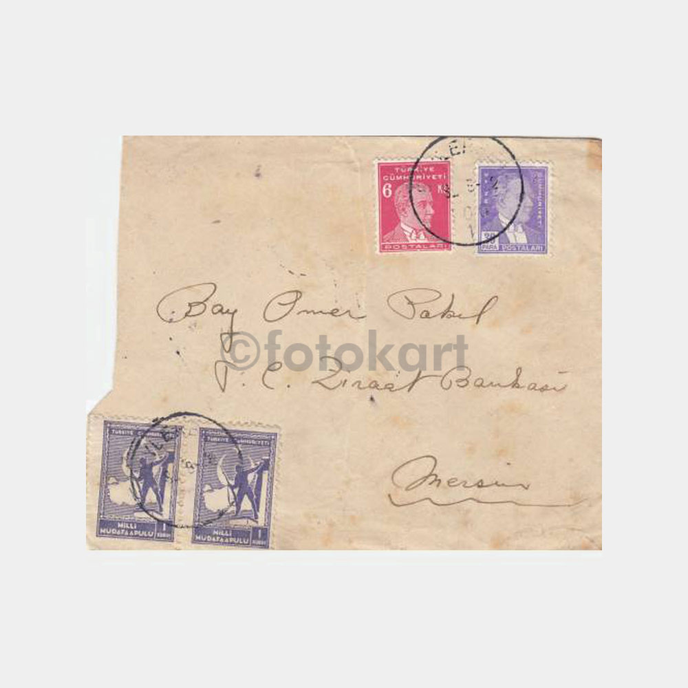 Damgalı, pullu zarf, Mersin kaşeli.