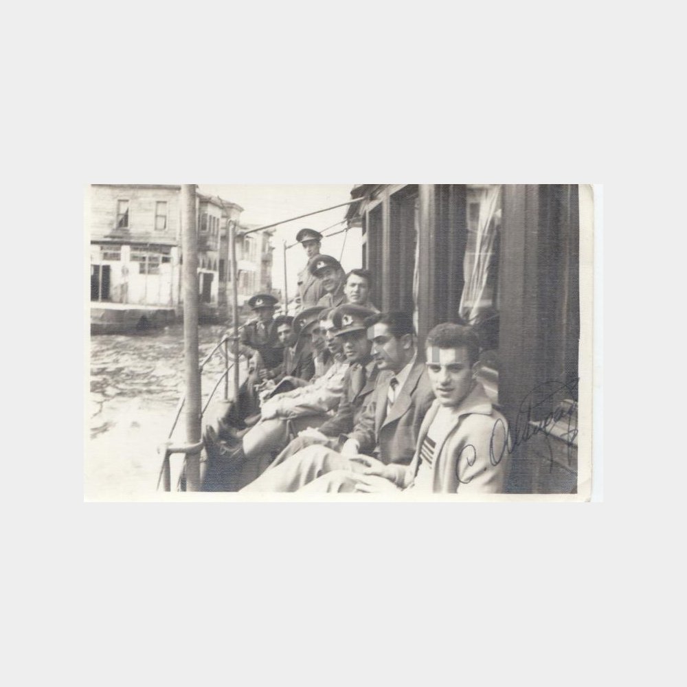 14 x 9 cm ebadında, arkası yazılı, belgesel fotoğraf, 1952 Türkiye birincilikleri için Kuleli’yi ziyaret Beylerbeyi yazılı.
