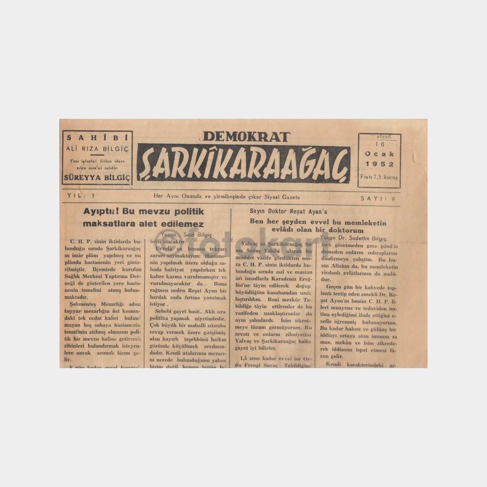 “1952 Isparta Şarkikaraağaç Gazetesi” için yorum yapan ilk kişi siz olun