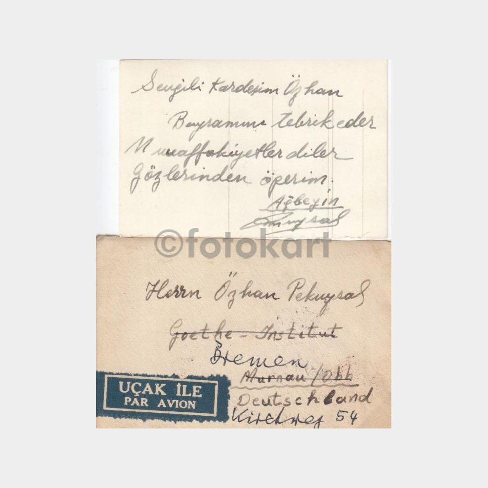 6 x 9 cm ebadında. Zarfın arkası kesik durumda, yazılı.