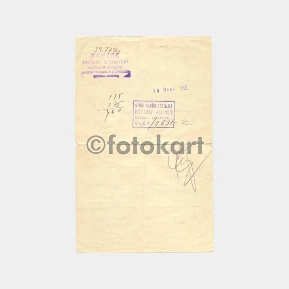 arkasında Kanzuk İngiliz Eczanesi Ve Sırrı Rasim Aktulga Eczanesi Damgaları Var