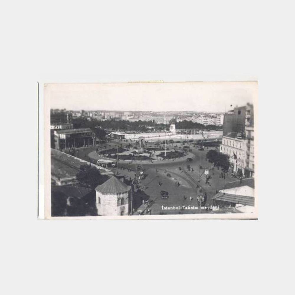 1952 Taksim Meydanı Görünüş Damgalı Fotokart